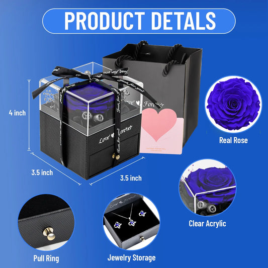 Eternal Rose with Necklace Earrings Set Royal Blue
